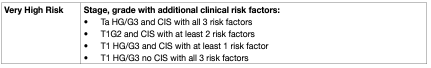 • Based on data from the literature, all patients with CIS in the prostatic urethra, with subtypes of urothelial carcinoma or with LVI should be included in the very high-risk group.