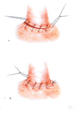Some surgeons perform mucosal eversion of the bladder neck as its own step in open RP with the aim of securing a mucosa-to-mucosa vesico-urethral anastomosis and avoiding anastomotic stricture.