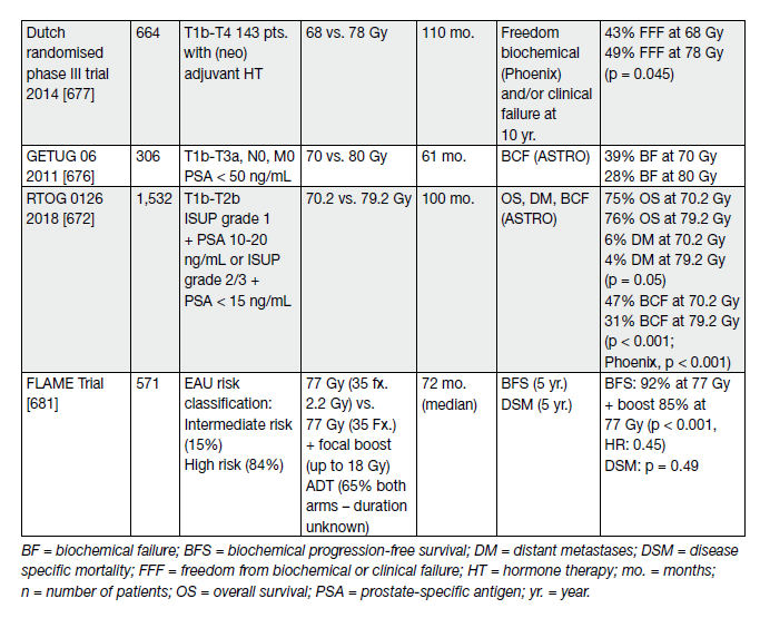 98. Peeters, S.T., et al. Dose-response in radiotherapy for localized prostate cancer: results of the Dutch multicenter randomized phase III trial comparing 68 Gy of radiotherapy with 78 Gy. J Clin Oncol, 2006. 24: 1990. https://pubmed.ncbi.nlm.nih.gov/16648499/