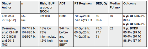 109. Lee, W.R., et al. Randomized Phase III Noninferiority Study Comparing Two Radiotherapy Fractionation Schedules in Patients With Low-Risk Prostate Cancer. J Clin Oncol, 2016. 34: 2325. https://pubmed.ncbi.nlm.nih.gov/27044935/