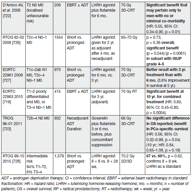 121. Denham, J.W., et al. Short-term neoadjuvant androgen deprivation and radiotherapy for locally advanced prostate cancer: 10-year data from the TROG 96.01 randomised trial. Lancet Oncol, 2011. 12: 451. https://pubmed.ncbi.nlm.nih.gov/21440505/