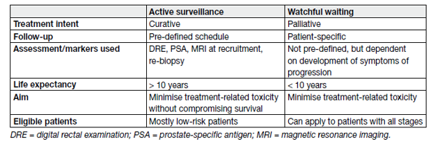 Table 1. Definitions of active surveillance and watchful waiting