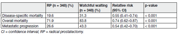The study found radical prostatectomy (RP) to provide superior cancer-specific survival (CSS), overall survival (OS) and biochemical progression-free survival (PFS) compared to watchful waiting (WW) at a median follow-up of 23.6 years (range 3 weeks–28 years).
