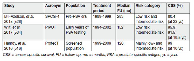 Table 4. Oncological results of radical prostatectomy in organ-confined disease in RCTs