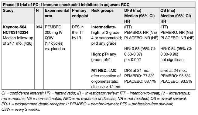 Table 1: Updated EAU RCC guideline recommendation for the adjuvant treatment of high-risk ccRCC
